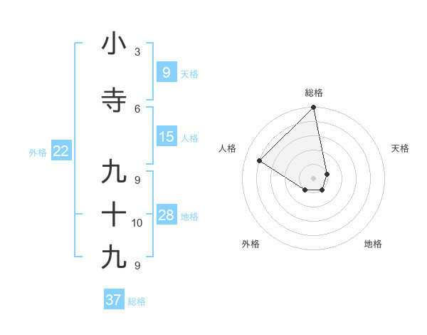 小寺 九十九さんを姓名の画数から五運を鑑定