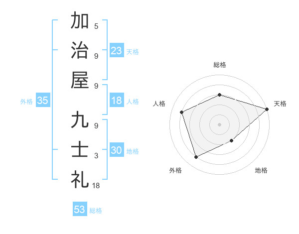 加治屋 九士礼さんの天格は23画の5点