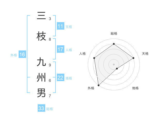 三枝 九州男さんを姓名の画数から五運を鑑定