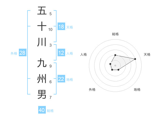 五十川 九州男さんを姓名の画数から五運を鑑定