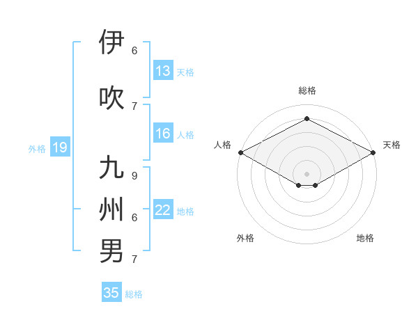 伊吹 九州男さんの天格は13画の5点
