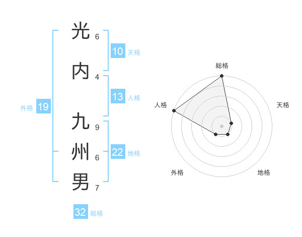 光内 九州男さんの地格は22画の1点!