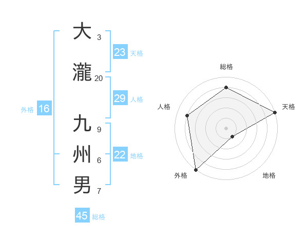 大瀧 九州男さんの天格は23画の5点!