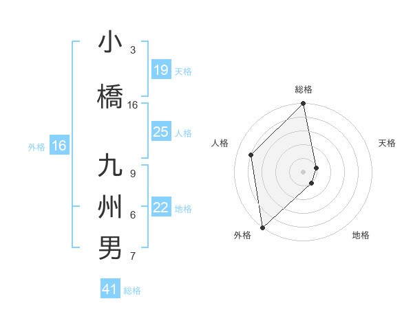 小橋 九州男さんを姓名の画数から五運を鑑定