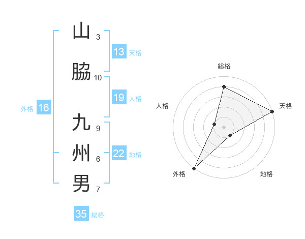 山脇 九州男さんを姓名の画数から五運を鑑定