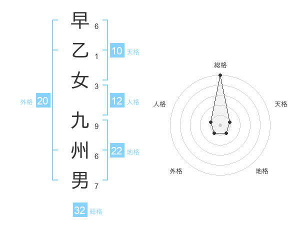 早乙女 九州男さんを姓名の画数から五運を鑑定