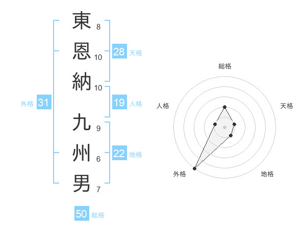 東恩納 九州男さんを姓名の画数から五運を鑑定