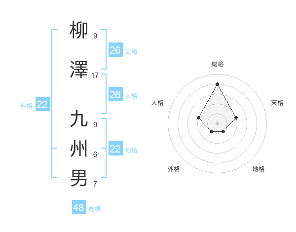 柳澤 九州男さんを姓名の画数から五運を鑑定
