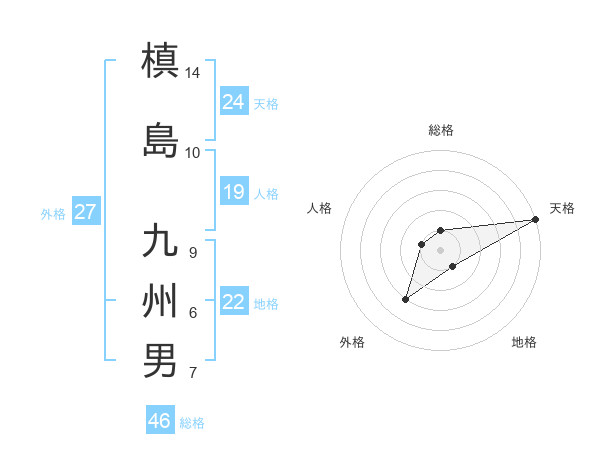 槙島 九州男さんを姓名の画数から五運を鑑定
