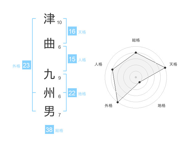 津曲 九州男さんの総格は38画の4点!
