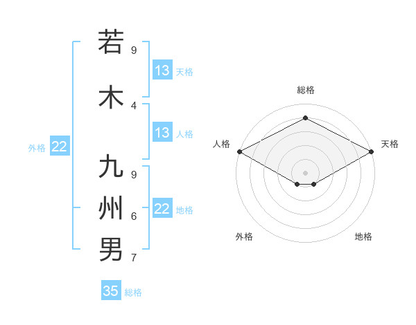 若木 九州男さんの天格は13画の5点!