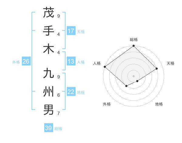 茂手木 九州男さんを姓名の画数から五運を鑑定