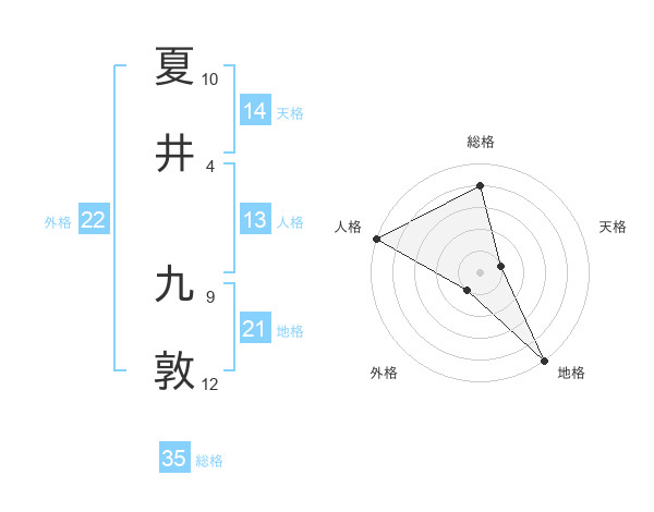 夏井 九敦さんを姓名の画数から五運を鑑定