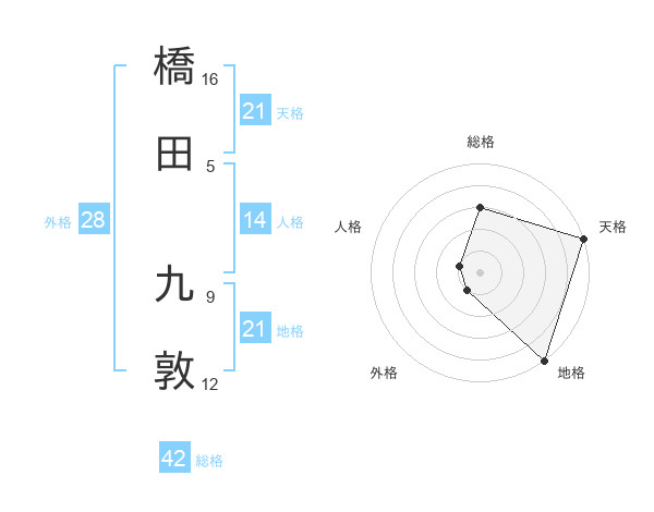 橋田 九敦さんの天格は21画の5点!