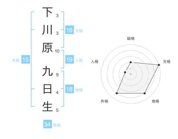 下川原 九日生さんを姓名の画数から五運を鑑定