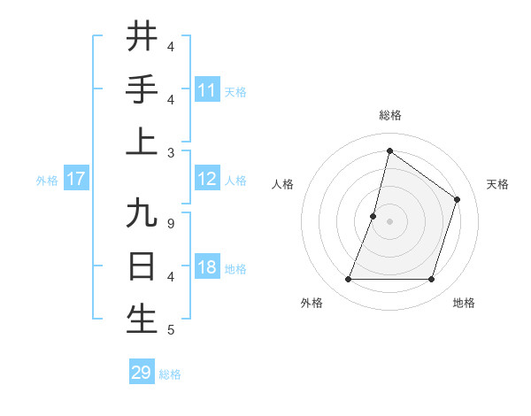井手上 九日生さんを姓名の画数から五運を鑑定