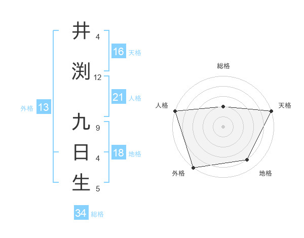 井渕 九日生さんの天格は16画の5点!