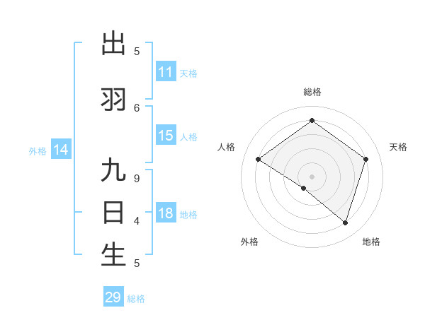 出羽 九日生さんの総格は29画の4点!