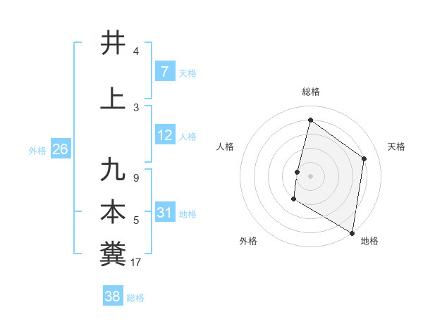 井上 九本糞さんを姓名の画数から五運を鑑定