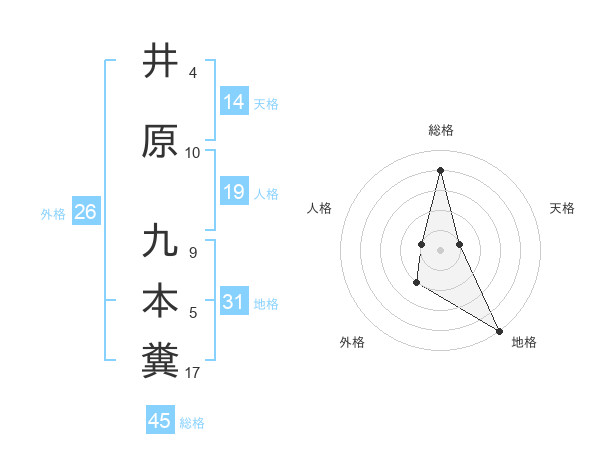 井原 九本糞さんを姓名の画数から五運を鑑定