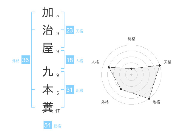 加治屋 九本糞さんを姓名の画数から五運を鑑定