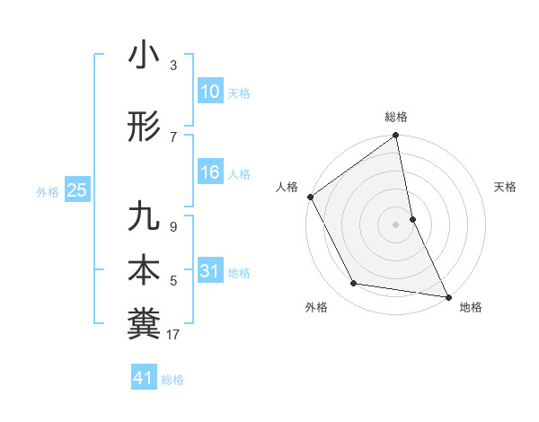 小形 九本糞さんの総格は41画の5点!
