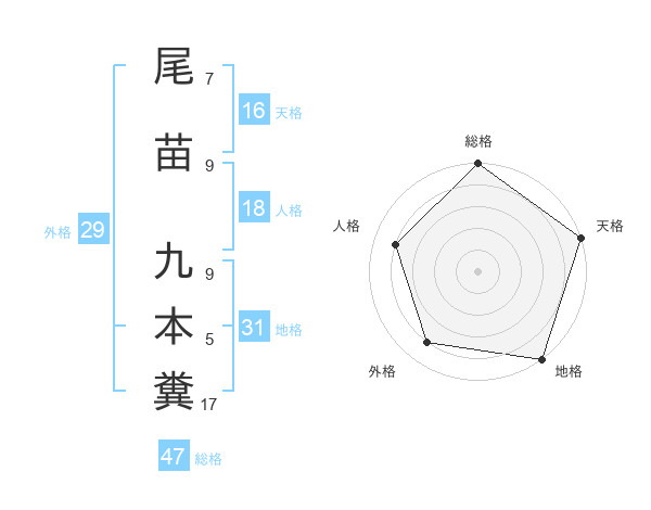 尾苗 九本糞さんを姓名の画数から五運を鑑定