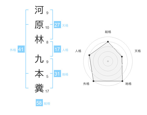 河原林 九本糞さんを姓名の画数から五運を鑑定