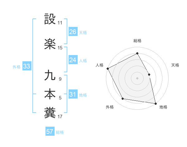設楽 九本糞さんを姓名の画数から五運を鑑定