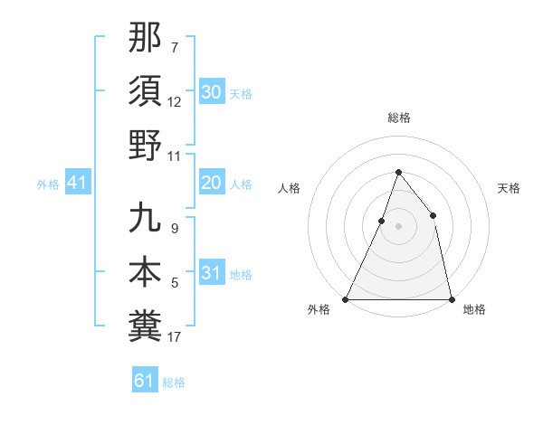 那須野 九本糞さんの外格は41画の5点!