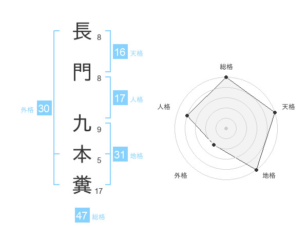 長門 九本糞さんを姓名の画数から五運を鑑定