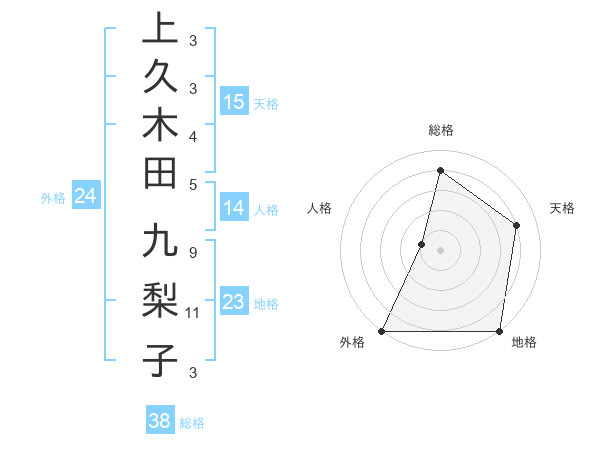 上久木田 九梨子さんを姓名の画数から五運を鑑定
