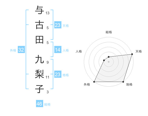 与古田 九梨子さんの天格は23画の5点