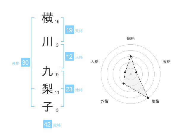 横川 九梨子さんの総格は42画の3点!