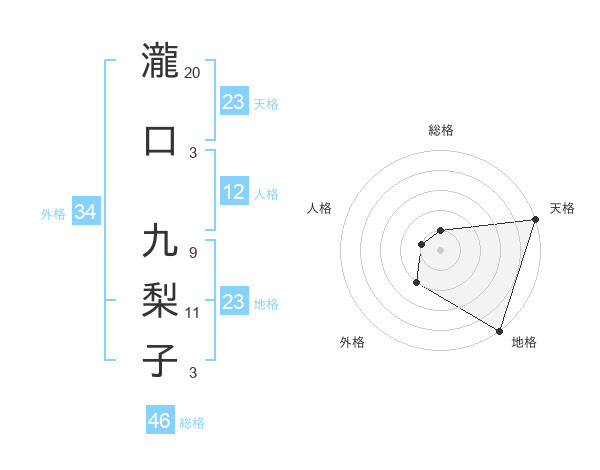 瀧口 九梨子さんの天格は23画の5点!