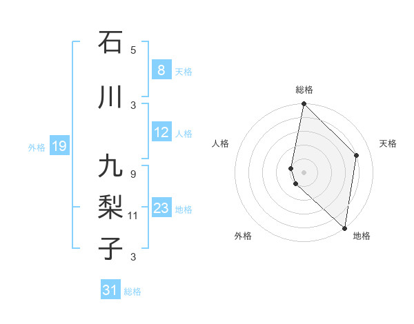 石川 九梨子さんを姓名の画数から五運を鑑定