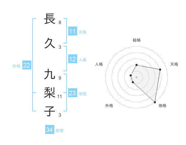 長久 九梨子さんを姓名の画数から五運を鑑定