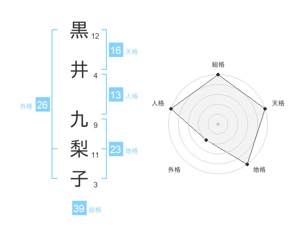 黒井 九梨子さんを姓名の画数から五運を鑑定