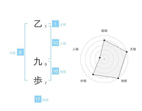乙 九歩さんの地格は16画の5点!