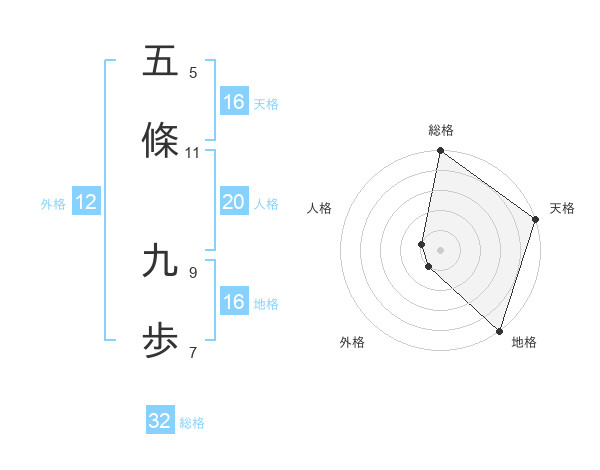 五條 九歩さんの天格は16画の5点!