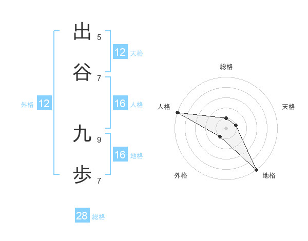 出谷 九歩さんを姓名の画数から五運を鑑定