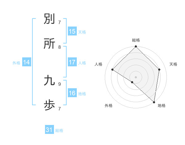 別所 九歩さんの総格は31画の5点!