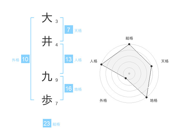大井 九歩さんの総格は23画の5点!