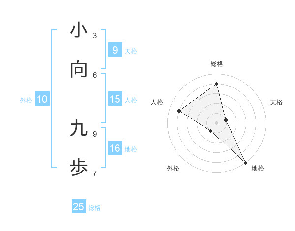 小向 九歩さんの総格は25画の4点!