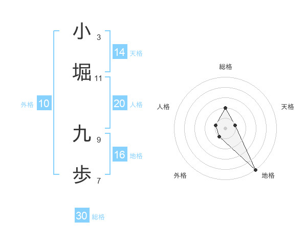 小堀 九歩さんの総格は30画の2点!