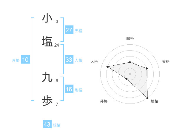 小塩 九歩さんを姓名の画数から五運を鑑定