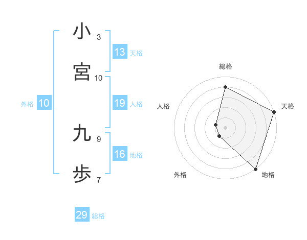 小宮 九歩さんの天格は13画の5点!