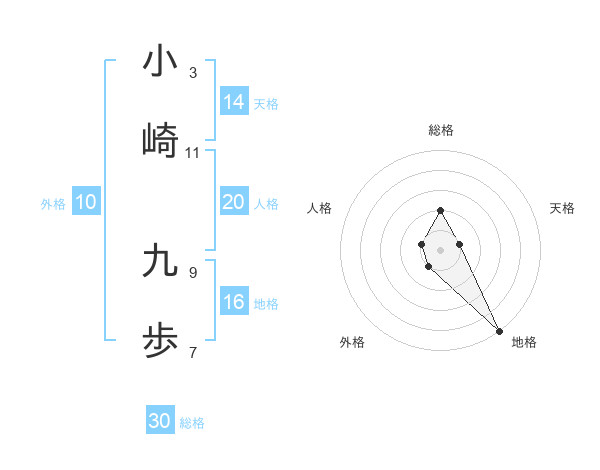 小崎 九歩さんを姓名の画数から五運を鑑定