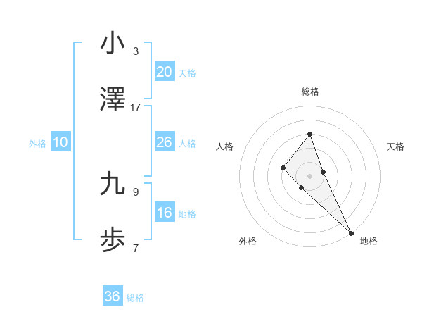 小澤 九歩さんを姓名の画数から五運を鑑定