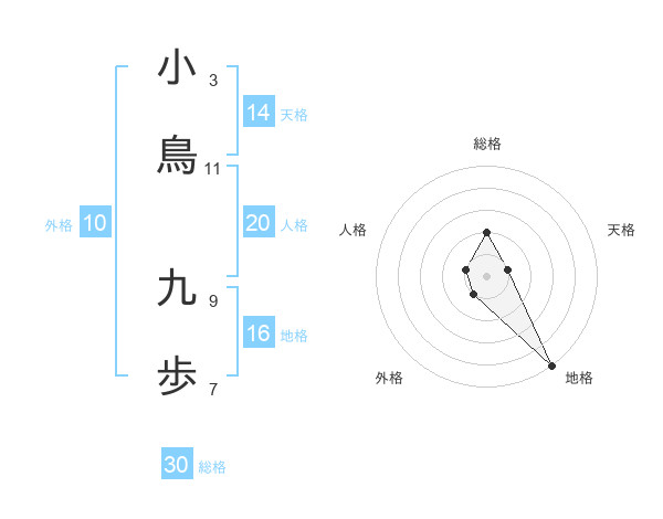 小鳥 九歩さんの総格は30画の2点!